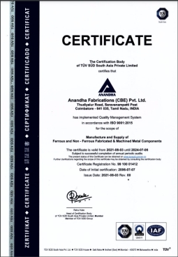 Anandha Fabrications (CBE) Pvt. Ltd. is an engineering and manufacturing firm that provides Assembled components for various industries. Both fabricated and machined components are assembled with bearings, Gear Couplings, Gear boxes, Drive Shafts etc., Some of our assemblies include: 1. Complete fabrication, machining and assembly of 2.1m diameter butterfly valve to France. Material grade: S355J2Go. Forged blocks upto 500mm thickness. SS410 Trunnions. 2. Complete fabrication, machining and assembly of 2.4m Knife gate valves with HARDOX liners, SS304 Gate and with Actuator for Coal Pulverizing plant. 3. Complete Fabrication, machining and assembly of Furnace Ladle Car for carrying 250MT molten metal in a steel plant. Includes 8 Forged and hardened (280BHN thorough Hardness and 480BHN surface hardness) wheels, 5m Drive shaft with gear couplings. Nett weight: 25MT. 4. Complete Fabrication, machining and Assembly of Threading Support Rollers for Steel Finishing Mill. Has 12 Polished Steel rollers with bearing on Plummer blocks.
